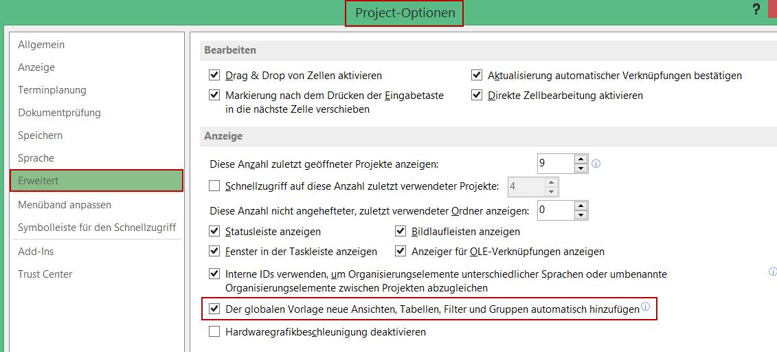 - Wann Sie den MS Project Organisator zur Weiterverwendung Ihrer benutzerdefinierten Ansichten einsetzen