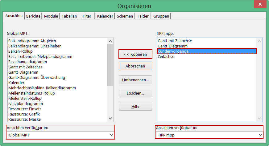 - Teil 6: MS Project Organisator zum Übertragen von Ansichten