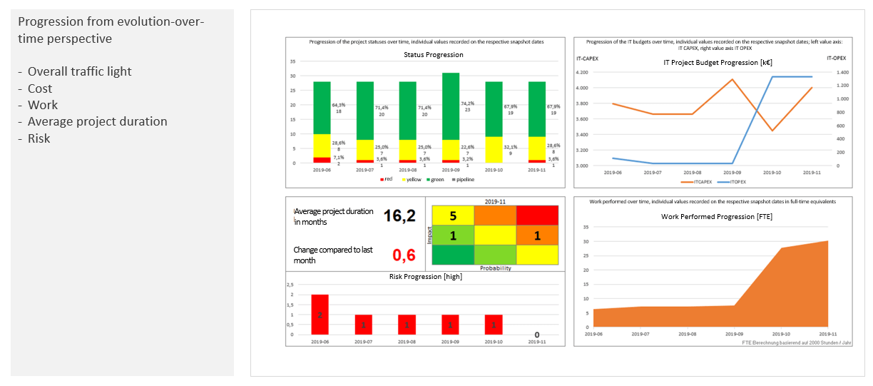 These days, IT solutions allow you to present reports in project management quickly on the screen, both in color and in the desired level of detail. When it comes to what information e.g. a PMO envisions for the company, we know from our consulting experience that classic fixed notions for project management reports come into play. They are expected to be: