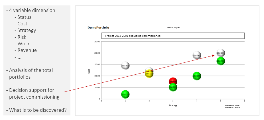 Often, the PMO is responsible for the preparation of the portfolio meeting. In a multi-project environment and in project portfolio management, the selection of projects is a particular challenge. From the project portfolio, which can be very substantial, you need to specifically select certain projects which are to be covered in the time available for the portfolio meeting.