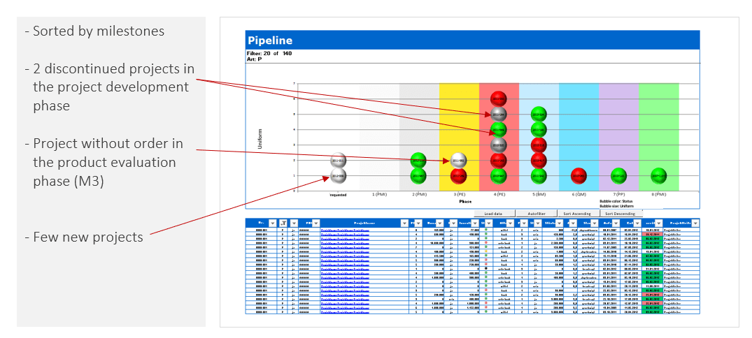 - Problem areas (technology, regions, project manager, product categories …)