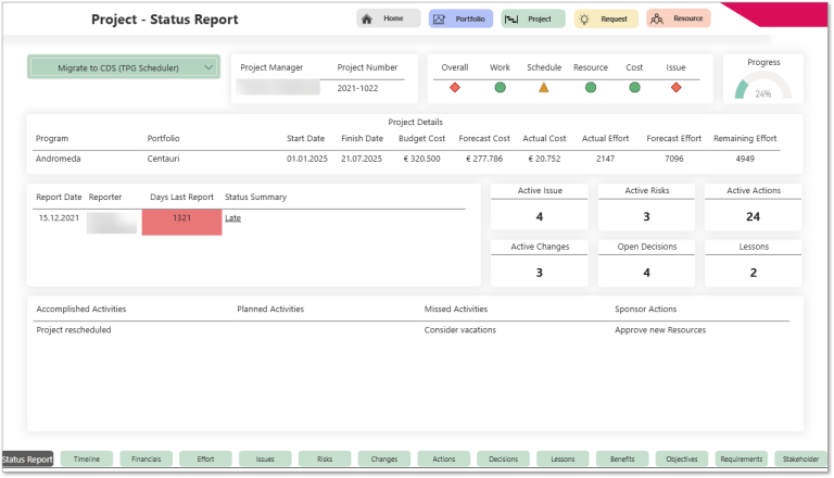 Learn more in our article on contents and creation of the Project Status Report.